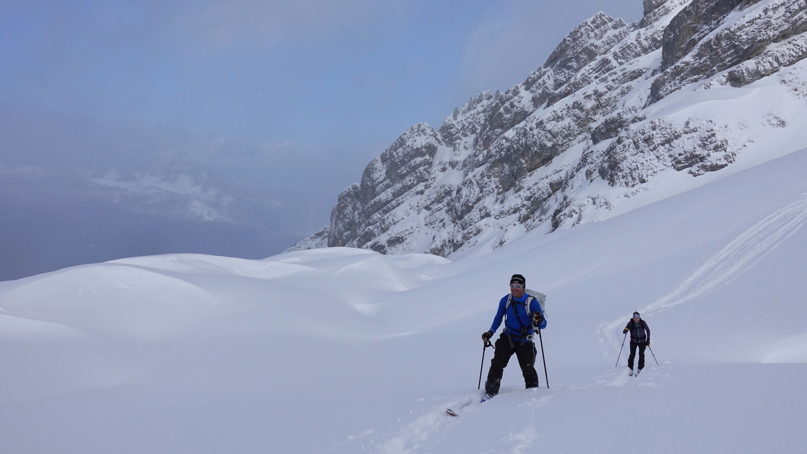 In den Zentralschweizer Voralpen herrschen besonders zu Anfang der Skitourensaison meistens gute Verhältnisse. Besonders der Roggenstock bietet schöne Powderhänge